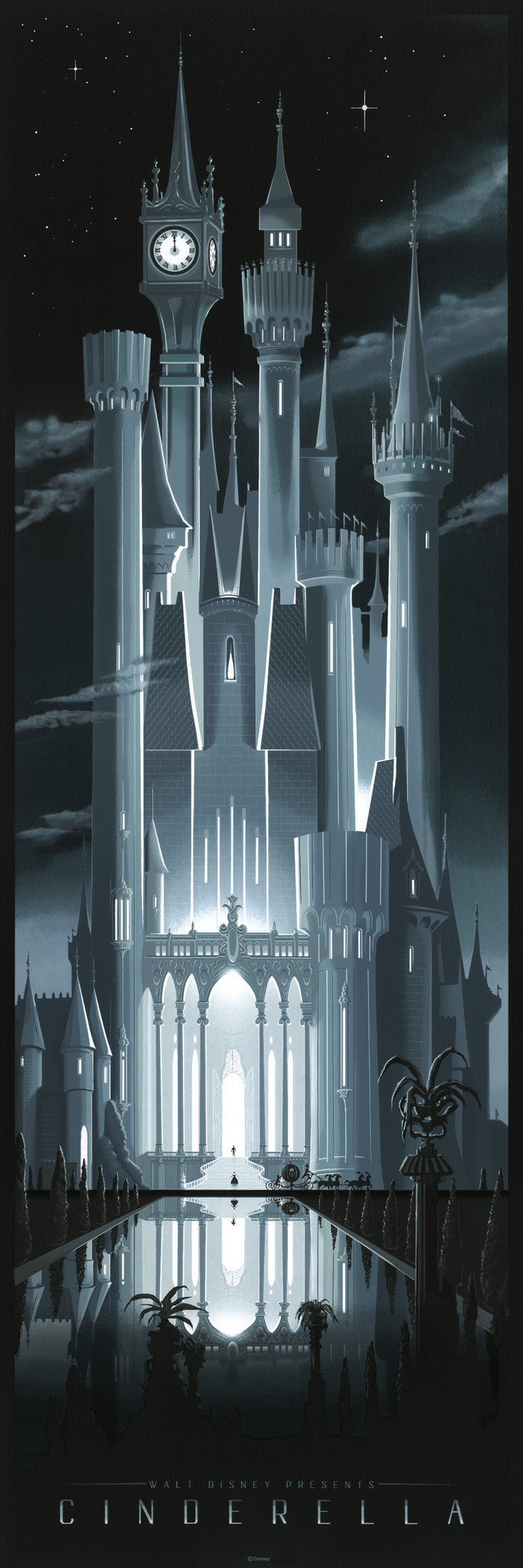 We're extremely proud to present JC Richard's Cinderella piece as a beautiful 18 color serigraph to mark the 65th anniversary of the animated classic. This incredible piece is the first of a series of Disney serigraphs with a focus on the landscapes and monuments of the films.